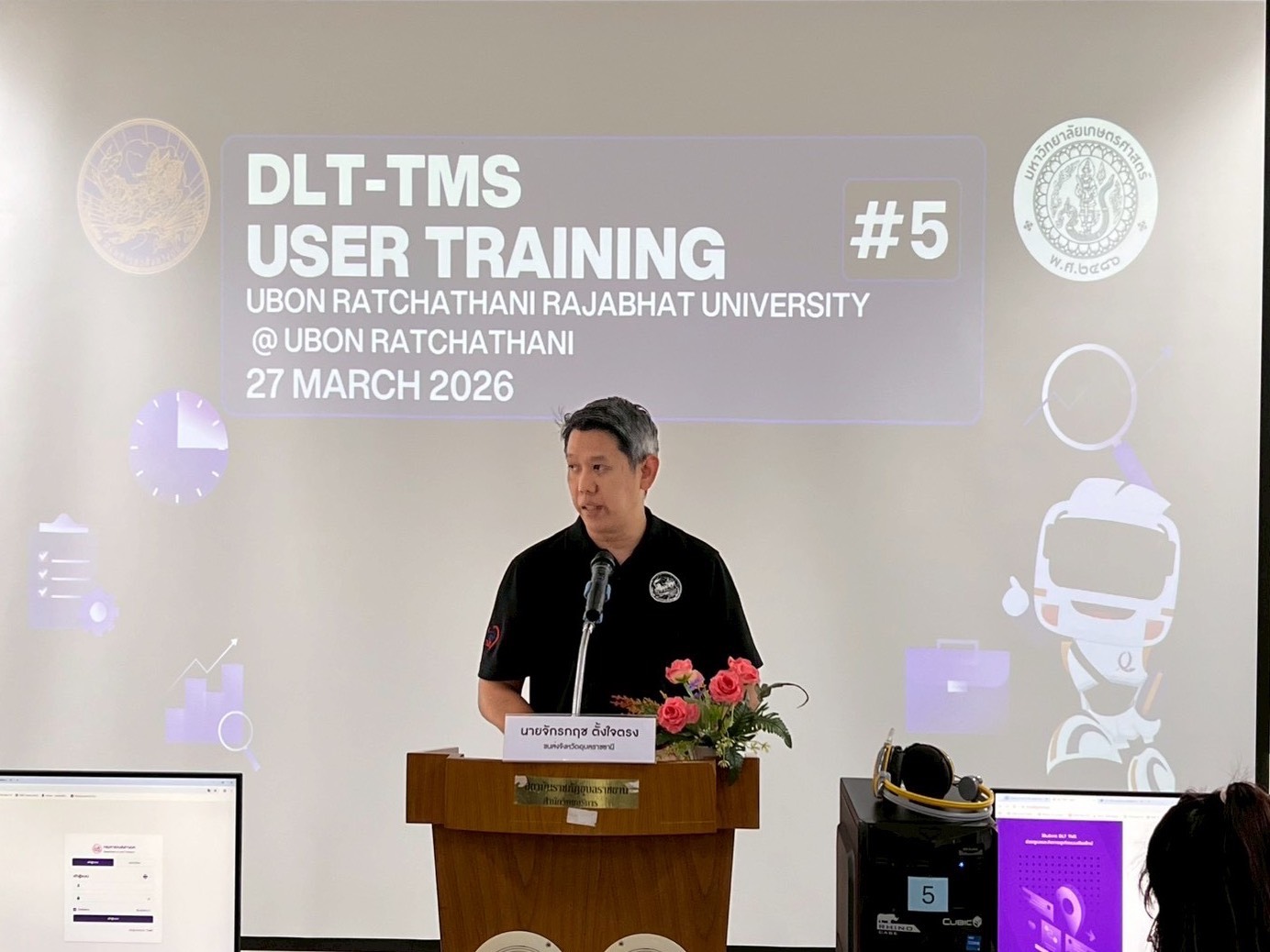 เมื่อวันที่ 27 มีนาคม 2569 ณ ห้องปฏิบัติการคอมพิวเตอร์ 2 อาคาร 13 ชั้น 2 สำนักวิทยบริการฯ มหาวิทยาลัยราชภัฏอุบลราชธานี จังหวัดอุบลราชธานี สำนักการขนส่งสินค้าร่วมกับสำนักงานขนส่งจังหวัดอุบลราชธานี ได้จัดกิจกรรมอบรมการใช้งานระบบเทคโนโลยีสารสนเทศบริหารจัดการขนส่งสินค้าทางถนน (DLT-TMS) ครั้งที่ 5 โดยมีนายจักรกฤช ตั้งใจตรง ขนส่งจังหวัดอุบลราชธานี เป็นประธานเปิดการอบรม และมี นางวิลาวัลย์ คันโททอง ผู้ตรวจราชกรม พร้อมด้วยหัวหน้ากลุ่มวิชาการขนส่ง สำนักงานขนส่งจังหวัดอุบลราชธานี และหัวหน้ากลุ่มวิชาการขนส่ง สำนักงานขนส่งจังหวัดศรีสะเกษ ให้เกียรติเข้าร่วมกิจกรรม มีผู้ประกอบการขนส่งสินค้าในจังหวัดอุบลราชธานีและศรีสะเกษเข้าร่วมการอบรม รวมจำนวนผู้เข้าร่วมกิจกรรมทั้งสิ้น 52 ราย