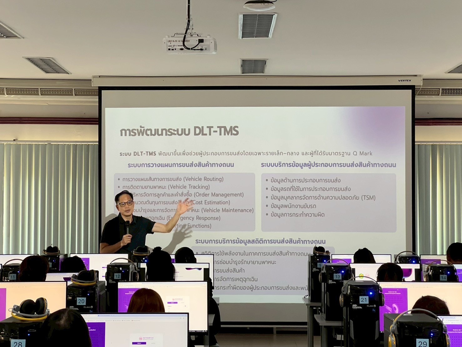 กิจกรรมในวันนี้ เป็นการอบรมการใช้งานระบบ DLT-TMS ซึ่งผู้ประกอบการขนส่งสินค้าให้ความสนใจในการนำระบบดังกล่าวมาประยุกต์ใช้ในการดำเนินงาน โดยเฉพาะอย่างยิ่งในส่วนของระบบบริการข้อมูลผู้ประกอบการขนส่งสินค้า ที่มีการรวบรวมข้อมูลที่สำคัญ อาทิ ข้อมูลใบอนุญาตประกอบการขนส่งสินค้า ข้อมูลใบอนุญาตขับรถของพนักงานขับรถ ประวัติการกระทำความผิด และข้อมูลการชำระภาษีรถประจำปี ซึ่งข้อมูลดังกล่าวจะช่วยอำนวยความสะดวกให้ผู้ประกอบการสามารถบริหารจัดการงานขนส่งได้อย่างมีประสิทธิภาพ และสามารถกำกับดูแลการปฏิบัติงานให้ถูกต้องตามกฎหมาย นอกจากนี้ ระบบดังกล่าวยังรองรับการรายงานผลการใช้เชื้อเพลิงในการขนส่ง ที่สามารถนำมาประเมินและคำนวณปริมาณการปล่อยก๊าซเรือนกระจก (Greenhouse Gas Emissions) ซึ่งข้อมูลส่วนนี้เป็นกลไกสำคัญที่จะนำไปสู่การวางแผนลดการใช้พลังงาน และขับเคลื่อนขนส่งที่เป็นมิตรต่อสิ่งแวดล้อมได้อย่างเป็นรูปธรรมและยั่งยืน