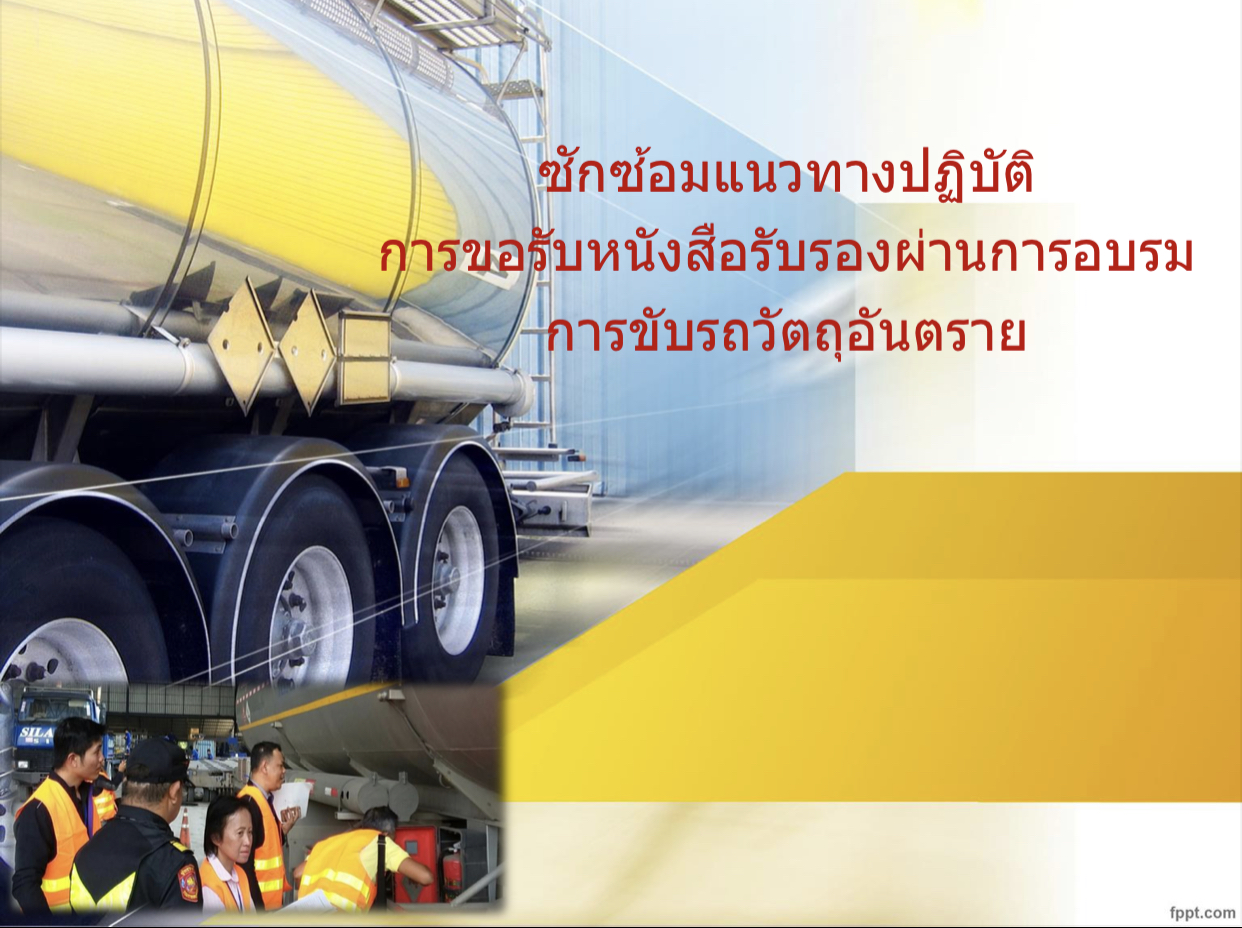 2.PPT ซักซ้อมแนวทางปฏิบัติการขอรับหนังสือรับรองผ่านการอบรมการขับรถวัตถุอันตราย (คลิก!)