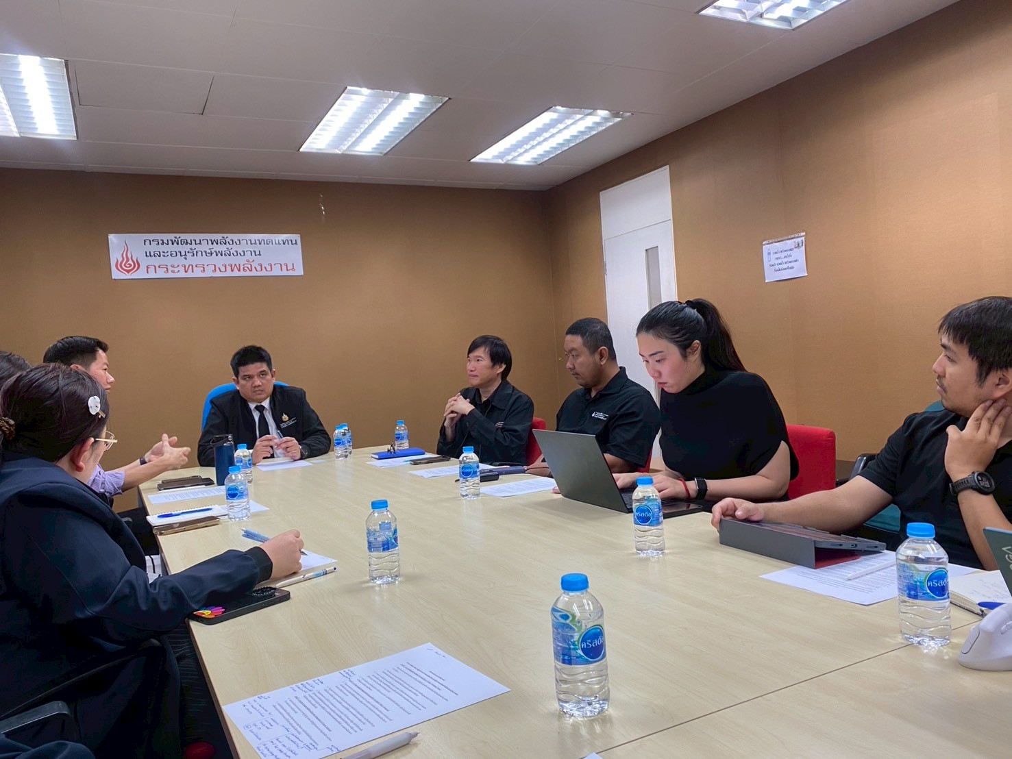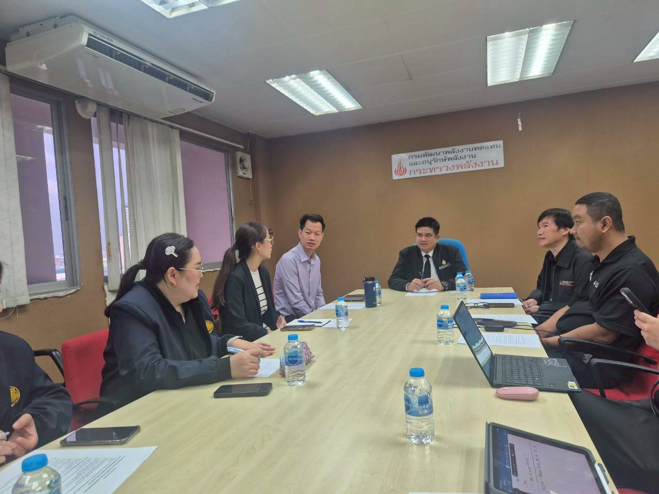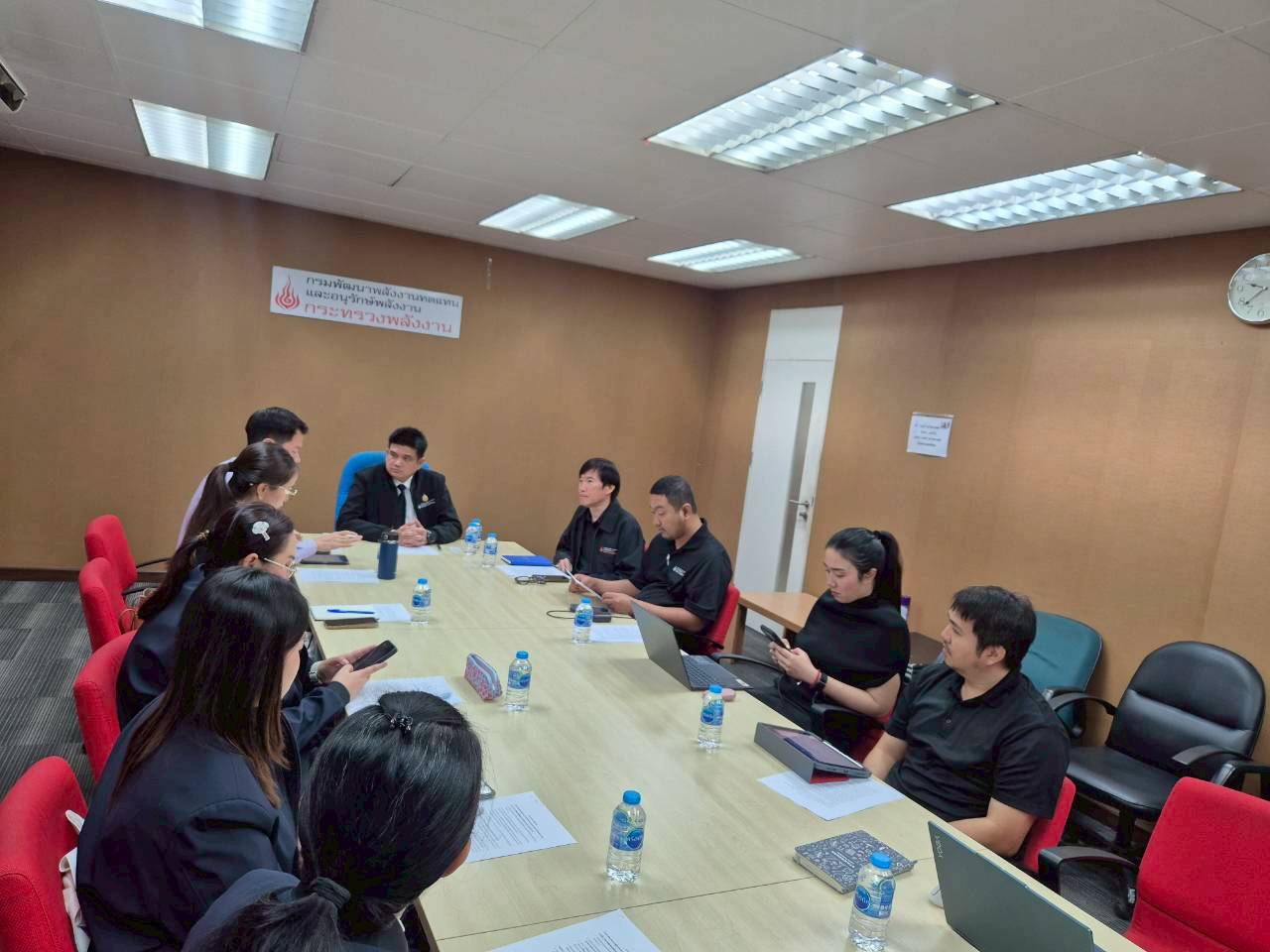 1. กรมอนุรักษ์พลังงาน: โดยมี นายณัฐพล รุ่นประแสง ผู้อำนวยการกองส่งเสริมการอนุรักษ์พลังงาน และคณะผู้แทน เข้าร่วมให้สัมภาษณ์ ในประเด็นบทบาทและหน้าที่ของหน่วยงานต่อ Green Logistics รวมถึงนโยบายและร่างแผนปฏิบัติการรายสาขา (Energy Efficiency Plan 2024) ของหน่วยงานในฐานะที่เป็นหน่วยประสานในการขับเคลื่อนแผนงานในด้านการใช้พลังงานของประเทศ ทั้งในด้านการอนุรักษ์พลังงานและด้านการจัดสรรพลังงานทดแทน โดยผู้แทนหน่วยงานได้ให้ข้อเสนอแนะว่า การขับเคลื่อนให้ประเทศไทยสามารถดำเนินการตามแผนการลดการปล่อยก๊าซเรือนกระจกของประเทศที่ตั้งเป้าหมายการลดการปล่อยก๊าซเรือนกระจกให้เป็นศูนย์ (Net-Zero GHG Emissions) ภายในปี พ.ศ. 2593 นั้น จำเป็นต้องคำนึงถึงความพร้อมของปัจจัยแวดล้อมที่เกี่ยวข้อง อาทิ โครงสร้างพื้นฐานแวดล้อม มาตรการสนับสนุนด้านการเงินและด้านบุคลากรจากภาครัฐ ตลอดจนความตระหนักรู้และความเข้าใจใน Green Logistics ของกลุ่มผู้ประกอบการขนส่ง ทั้งนี้ หน่วยงานยินดีเชิญกรมการขนส่งทางบกเข้าร่วมการจัดทำแผนที่เกี่ยวข้อง เพื่อให้ได้มาซึ่งแผนปฏิบัติการที่มีประสิทธิภาพสูงสุดต่อไป