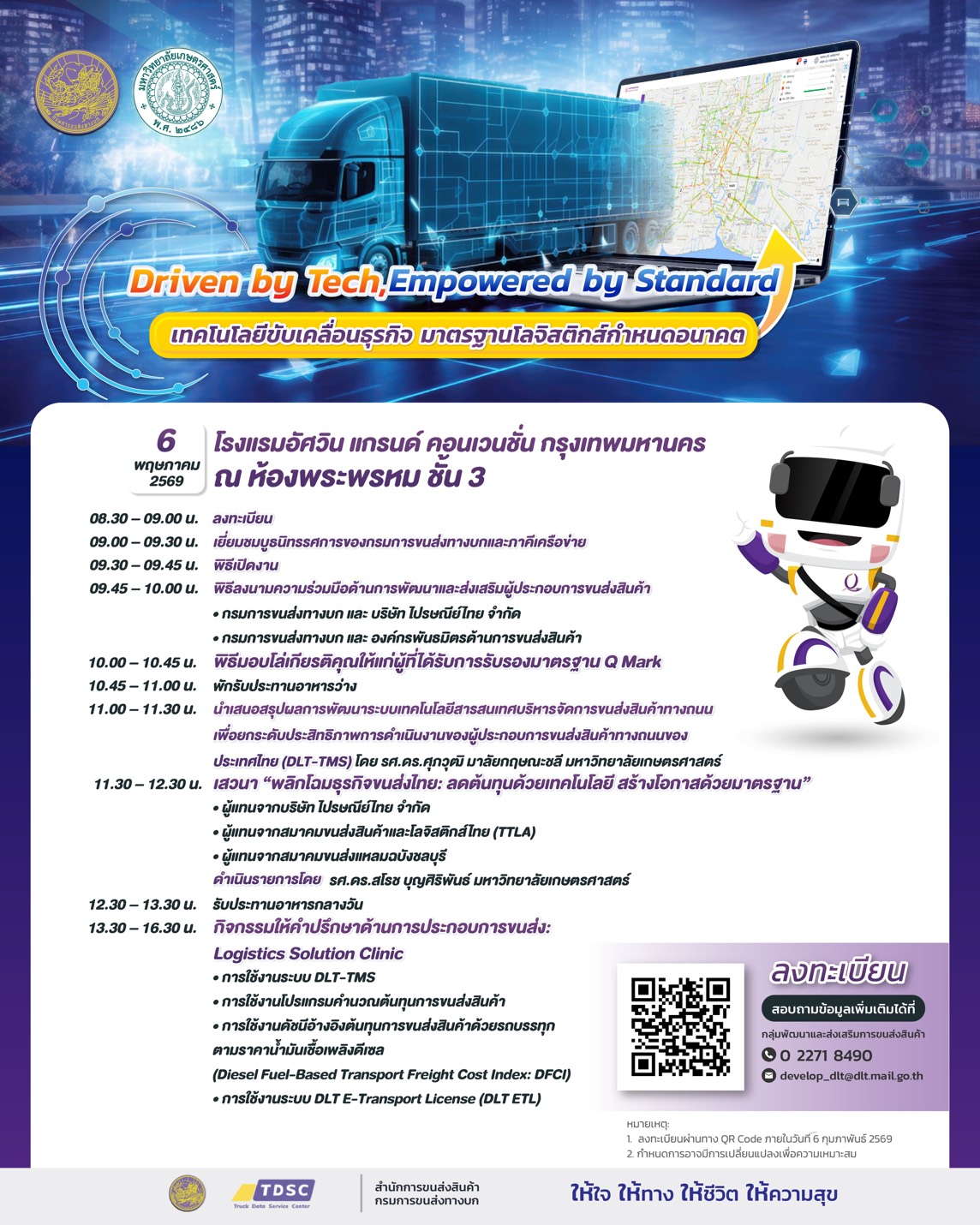 - การเสวนาพิเศษ ในหัวข้อ “พลิกโฉมธุรกิจขนส่งไทย: ลดต้นทุนด้วยเทคโนโลยี สร้างโอกาสด้วยมาตรฐาน”