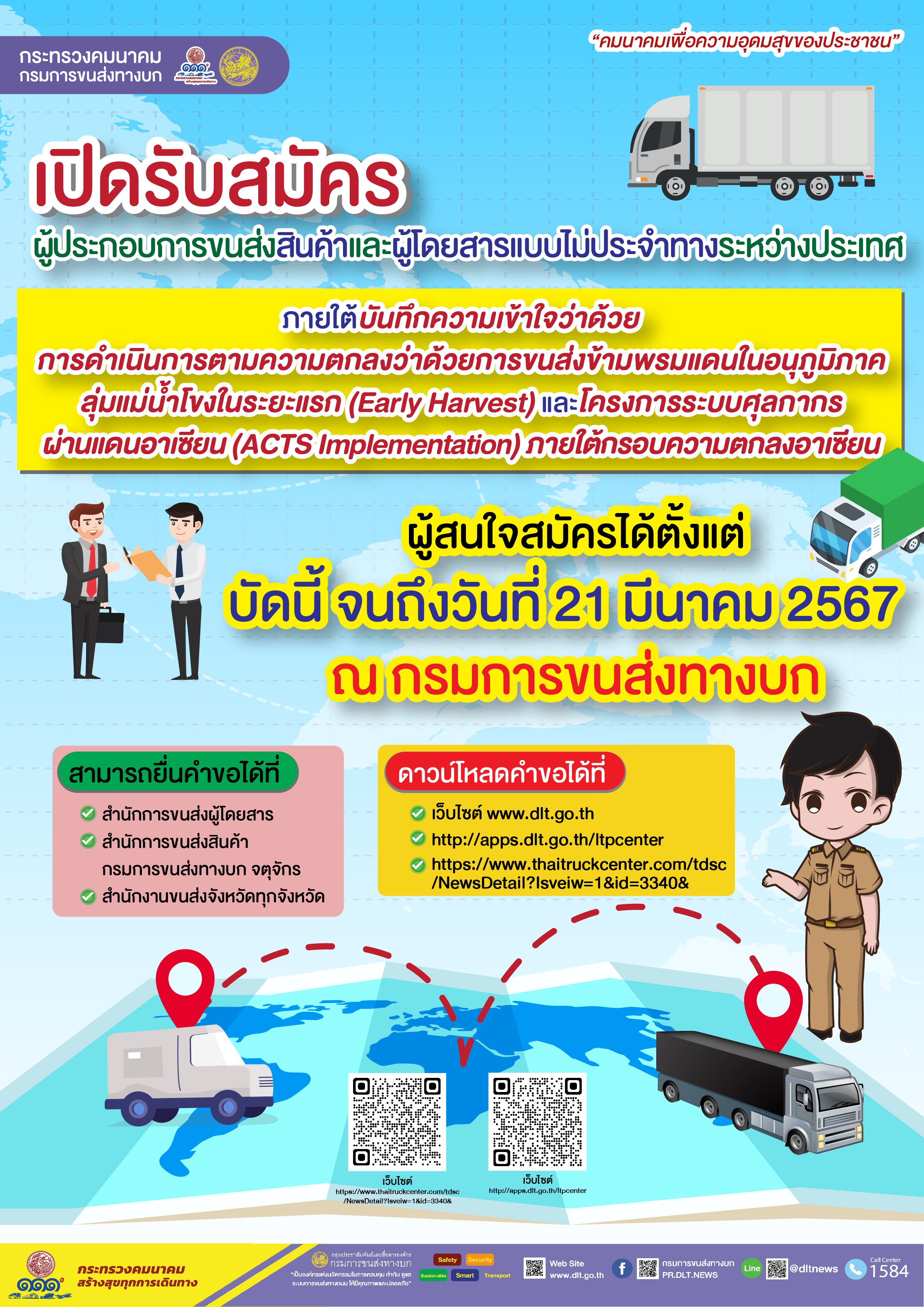 1.2 ประกาศเชิญชวนผู้สนใจเป็นผู้ประกอบการขนส่งระหว่างประเทศ (เพิ่มเติมคลิก!)