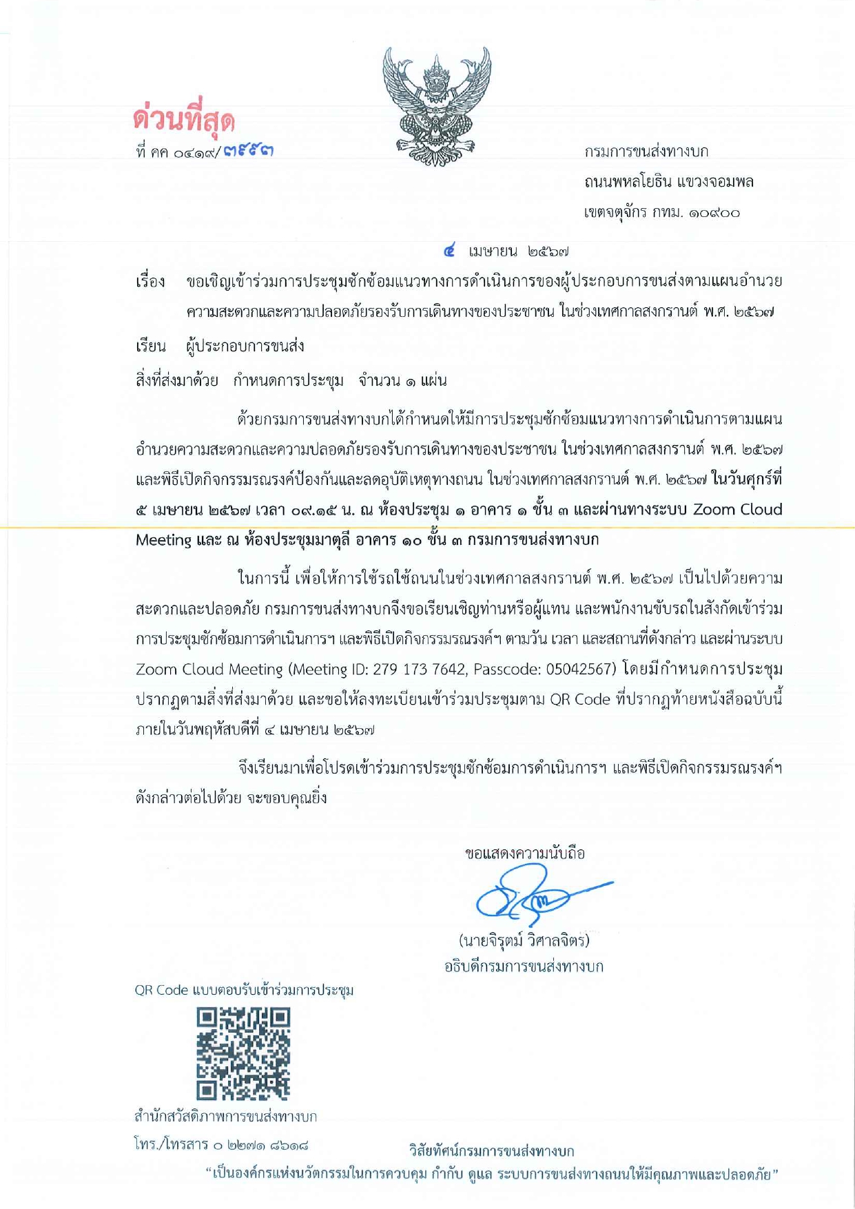 ขอเชิญข้าร่วมการประชุมชักซ้อมแนวทางการดำเนินการของผู้ประกอบการขนส่ง