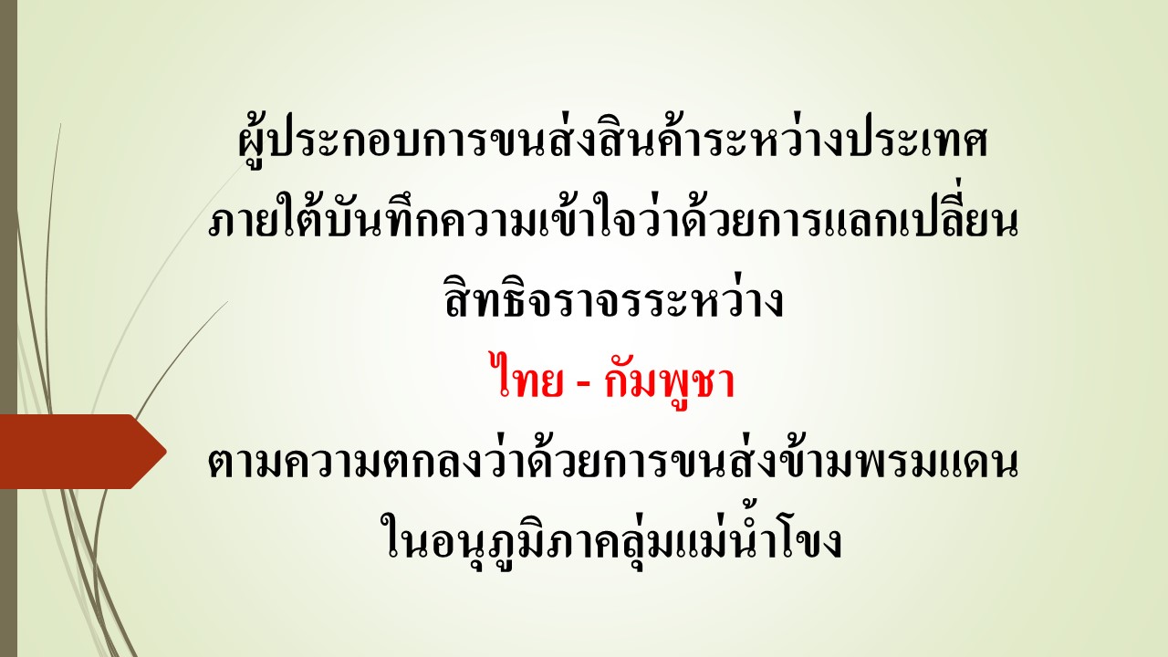 ผู้ประกอบการขนส่งสินค้าทางถนนระหว่างประเทศ ภายใต้บันทึกความเข้าใจระหว่างประเทศไทย-กัมพูชา