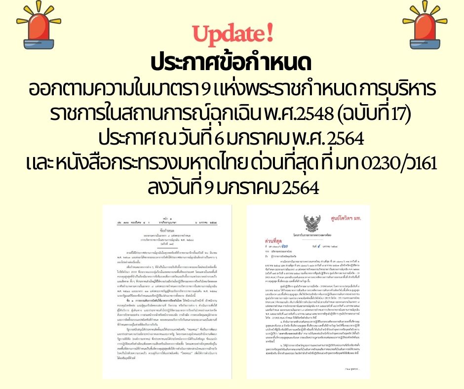 เนื้อหาที่เกี่ยวข้องกับผู้ประกอบการขนส่งสินค้าข้อกำหนด ออกตามความในมาตรา 9 แห่งพระราชกำหนด การบริหารราชการในสถานการณ์ฉุกเฉิน พ.ศ.2548 (ฉบับที่ 17) ประกาศ ณ วันที่ 6 มกราคม พ.ศ. 2564 และหนังสือกระทรวงมหาดไทย ด่วนที่สุด ที่ มท 0230/ว78 ลงวันที่ 9 มกราคม 2564